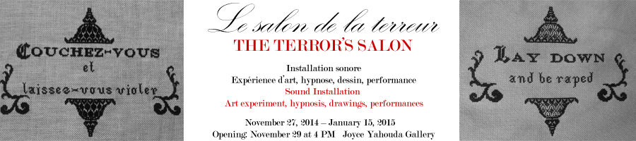 Céline B. La Terreur "Couchez-vous et laissez-vous violer", "Lay down and be raped", Silk on linen, 2014